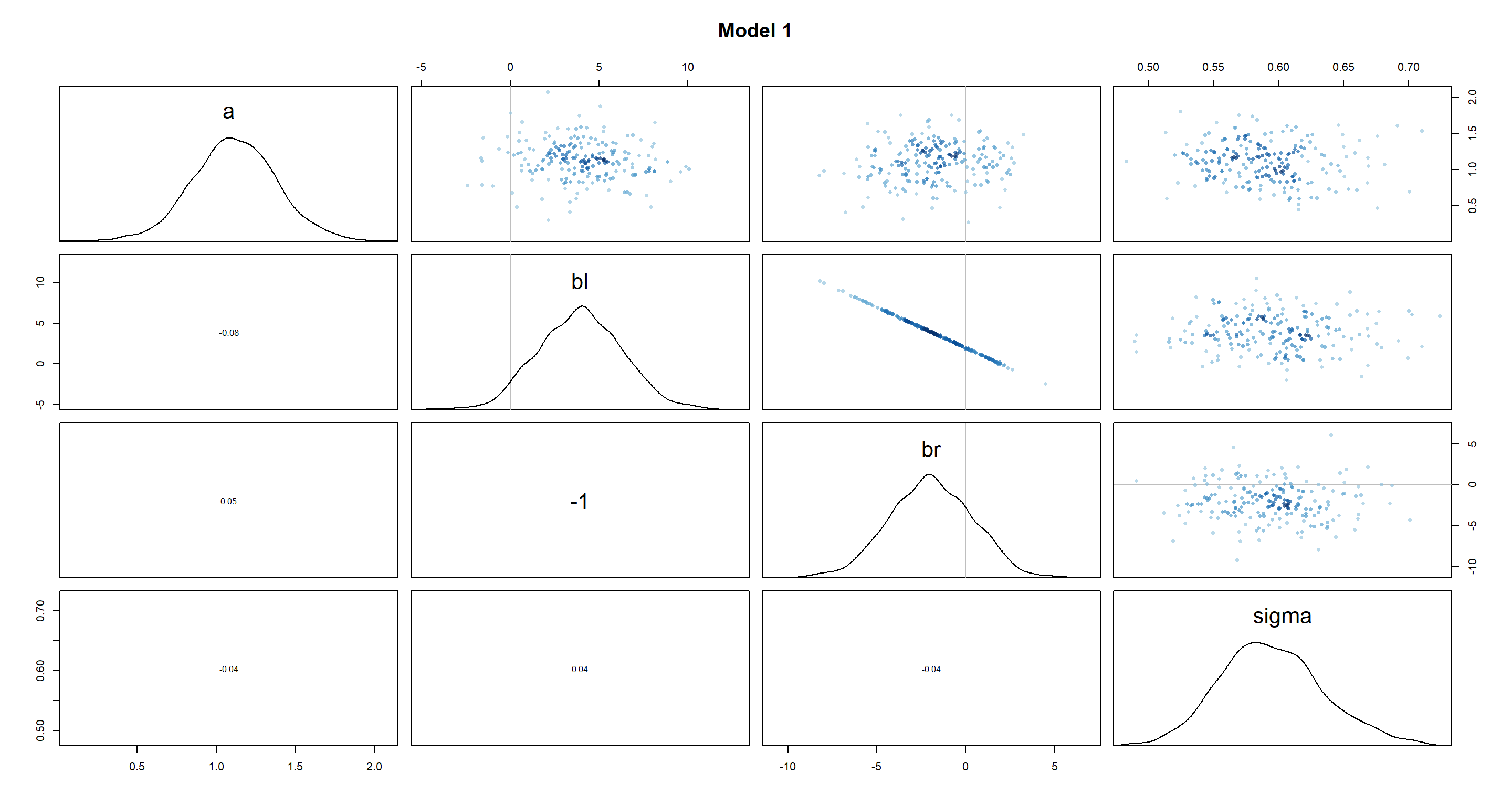 pairs(m5.8s, main = "Model 1")