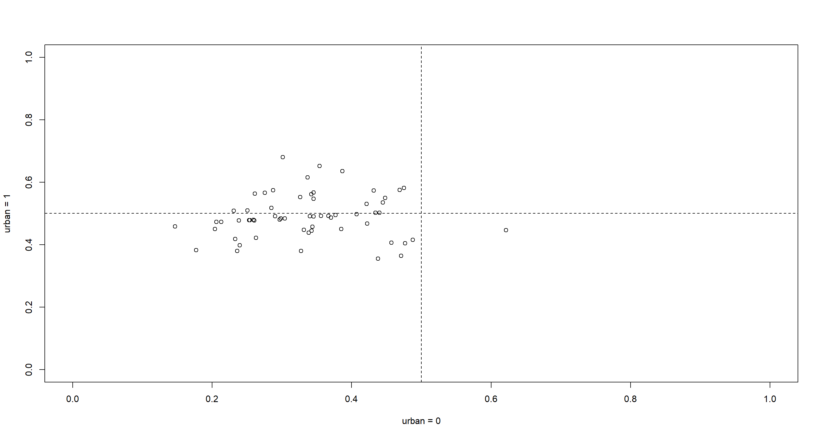 I don’t like interpreting standardised data coefficients like that. Let’s rather plot it: