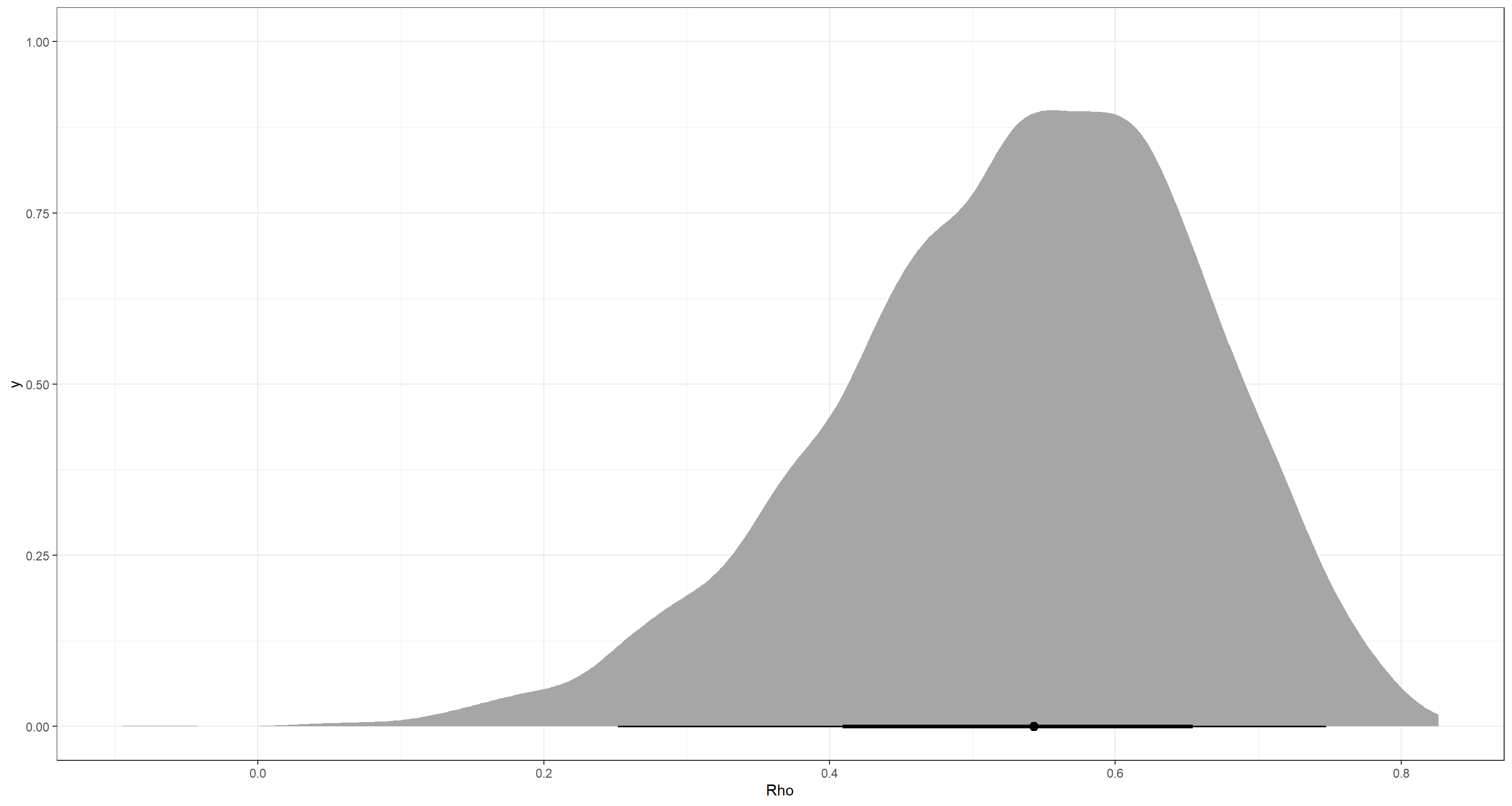 stat_halfeye(aes(x = post$Rho[, 1, 2])) +