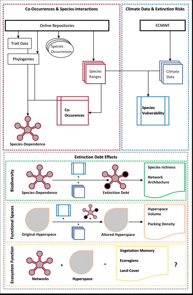 To ensure ecosystem management and conservation efforts are targeted appropriately under climate change, my work highlights that macroecological research practices ought to undergo a paradigm shift away from one-size-fits-all climate datasets towards reproducible and flexible data workflows for generation of climate datasets with respect to specific study purposes and requirements. Additionally, my explicit integration of ecological network resilience mechanisms towards extinction cascades reveals that contemporary approaches are likely overly optimistic in their projections of biodiversity loss throughout the Anthropocene. Lastly, I caution against naive use of ecological network inference within macroecological research. Instead, to render knowledge of ecological networks at macroecological scales, I argue that extensive assessments of network inference performance are required for which I present important groundwork.